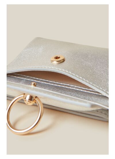 Porte-carte en cuir lisse avec compartiment monnaie à rabat