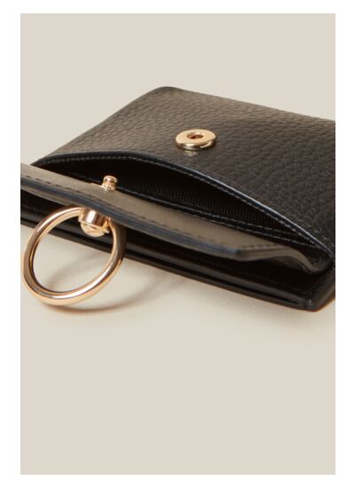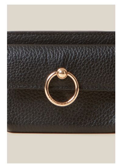 Porte-carte en cuir grainé avec compartiment monnaie à rabat et anneau doré gravé Claudie Pierlot