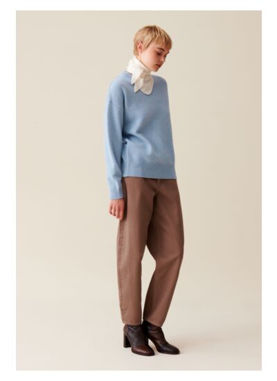 Ce pull présente une coupe ajustée qui valorise la silhouette. Nous conseillons de prendre votre taille habituelle pour un rendu élégant et confortable.