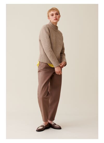 Pull beige en laine mélangée à col cheminée, manches longues et finitions côtelées