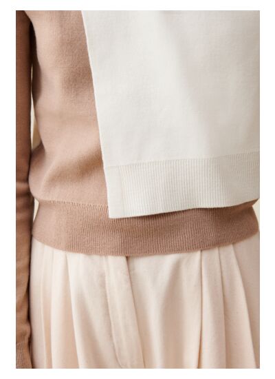 Ce pull court rabat ton sur ton convient-il à toutes les morphologies ? Ce modèle court met en valeur la taille et s’adapte particulièrement aux silhouettes équilibrées ou fines. Il peut être associé à des pantalons taille haute pour un look harmonieux et moderne.