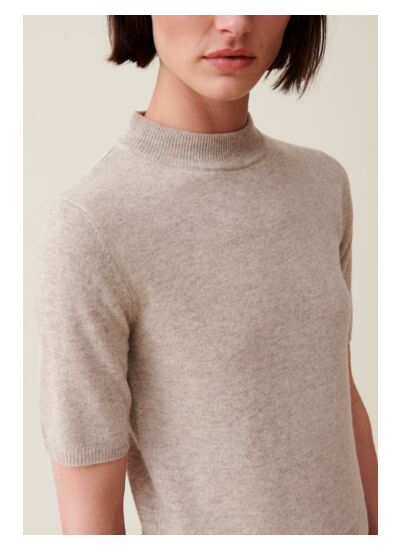 Pull beige court à manches courtes, col montant en laine, près du corps
