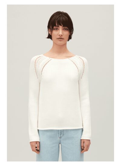 Peut-on associer ce pull facilement avec d’autres vêtements ? Oui, sa couleur écrue neutre s’accorde parfaitement avec des jeans, pantalons tailleur ou jupes, permettant de créer des tenues variées et élégantes.