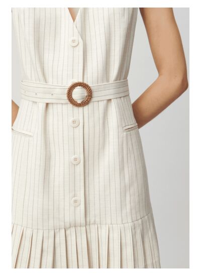 Robe ajustée esprit tailleur sans manches à col V et patte de boutonnage ton sur ton visible à l'avant