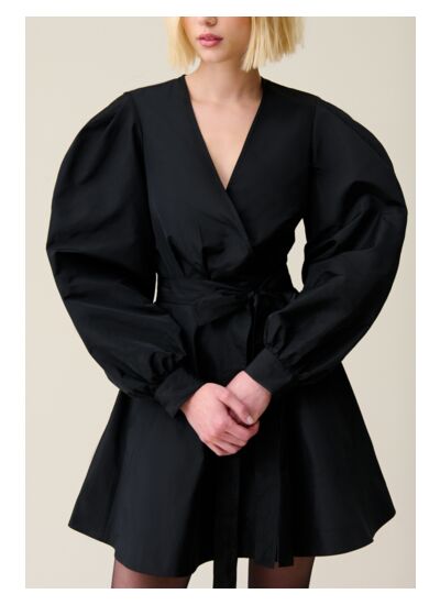 Robe courte manches longues ballons avec plis sur le haut et cintrée à la taille