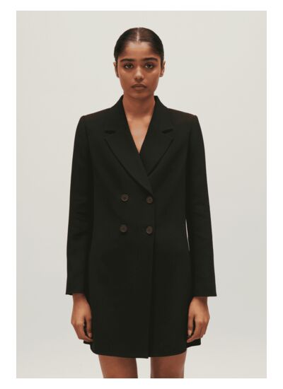 Quelle est la coupe de la robe CFPRO02120 ? La robe courte tailleur noir Claudie Pierlot présente une coupe ajustée qui souligne la silhouette tout en offrant une allure élégante et moderne, idéale pour un look professionnel ou une soirée chic.