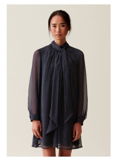 Quelle est la matière de la robe fluide col lavallière Claudie Pierlot ? La robe est conçue dans un tissu léger et fluide, offrant un tombé élégant et un confort optimal tout au long de la journée.