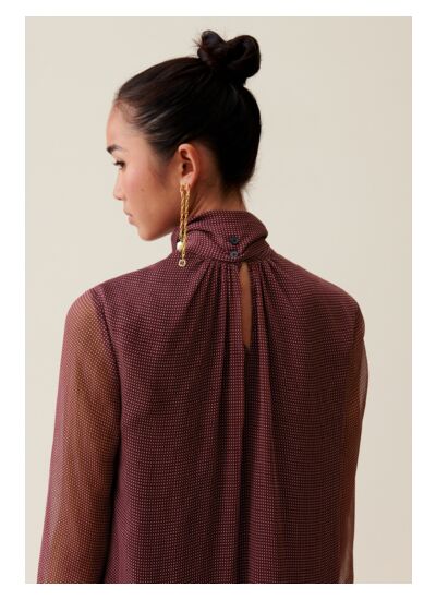- Jeu de fronces au niveau du col, du dos et des bas de manches