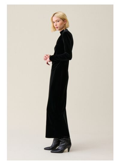 Robe longue en velours au col montant et manches longues