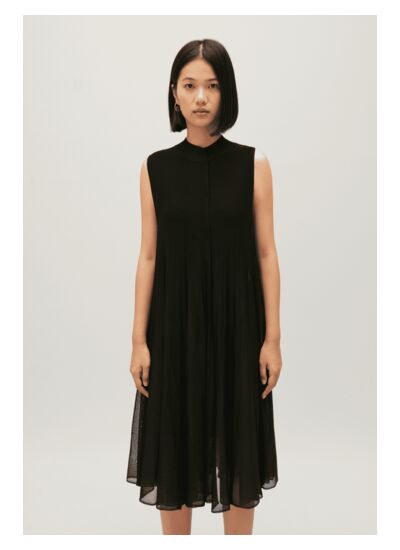 Comment choisir la taille idéale pour cette robe ? Référez-vous au guide des tailles Claudie Pierlot disponible sur notre site pour un ajustement parfait, la coupe fluide s’adaptant à différentes silhouettes.