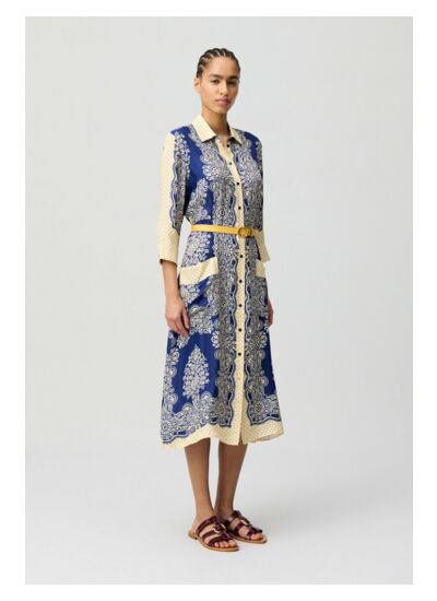 Cette robe convient-elle pour des occasions formelles ? Oui, son imprimé raffiné et sa longueur en font un choix élégant pour des événements professionnels ou des sorties chics.