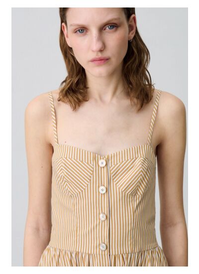 Robe longue rayée à fines bretelles réglables et patte de boutonnage le long de la robe