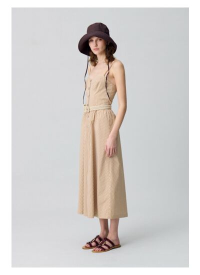 - Robe longue rayée à fines bretelles réglables