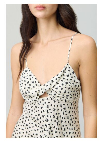 Robe satinée imprimé floral à fines bretelles réglables et décolleté twisté