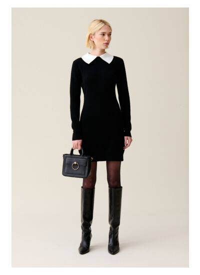 Robe en maille fine à manches longues avec col chemise amovible contrasté