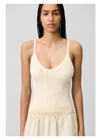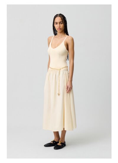 Quelle est la matière principale de la robe CFPRO02626 ? La robe mi-longue CFPRO02626 est conçue avec un buste en maille, offrant un équilibre parfait entre confort et élégance.