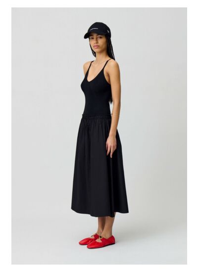 Robe bi-matière à haut en maille et jupon fluide avec jeu de plis