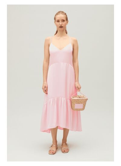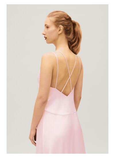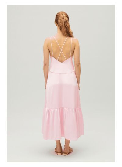 Quelle est la matière de la robe CFPRO02306 ? La robe CFPRO02306 est confectionnée en satin, offrant une texture douce, légère et un aspect brillant qui sublime la silhouette.
