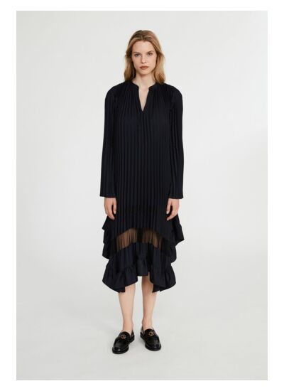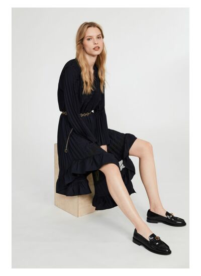 Quelle matière compose la robe plissée à volant Claudie Pierlot ? La robe est confectionnée dans un tissu léger et fluide, idéal pour un tombé élégant et un confort optimal tout au long de la journée.