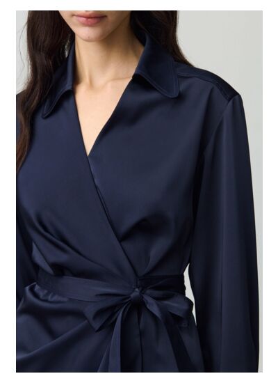 Robe midi portefeuille effet satiné avec fermeture croisée à nouer sur le côté