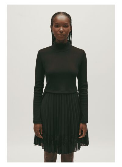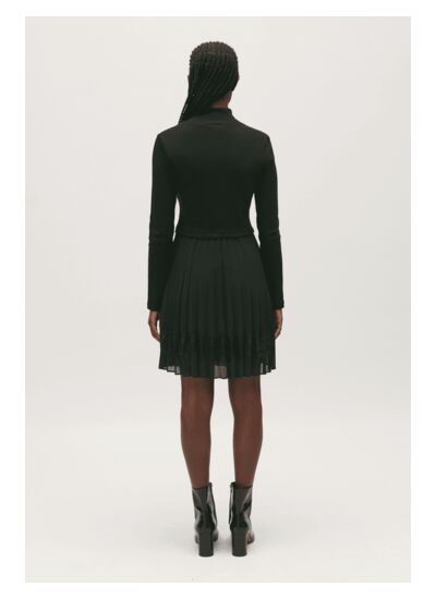 Cette robe Twist courte plissée noire de Claudie Pierlot est-elle adaptée pour une soirée élégante ? Oui, sa coupe courte et son plissé délicat offrent une silhouette sophistiquée, parfaite pour une soirée chic ou un événement habillé.