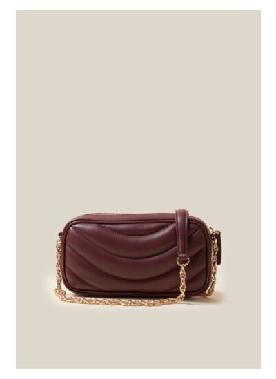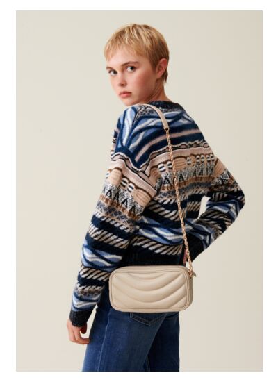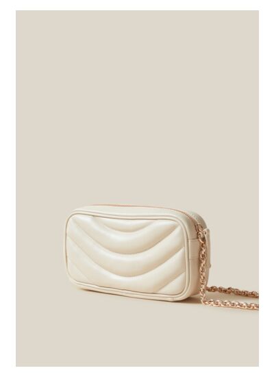 Sac Alba avoine en cuir avec matelassage demi-lune et chaine torsade dorée