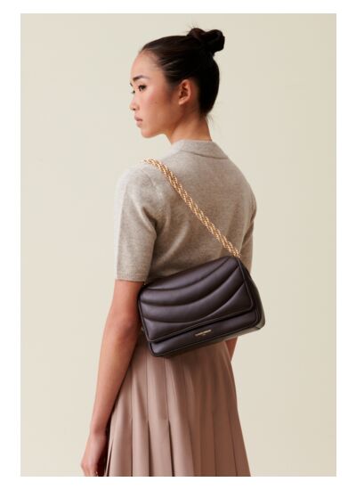 Sac Alba marron en cuir avec matelassage demi-lune et chaine dorée torsadée