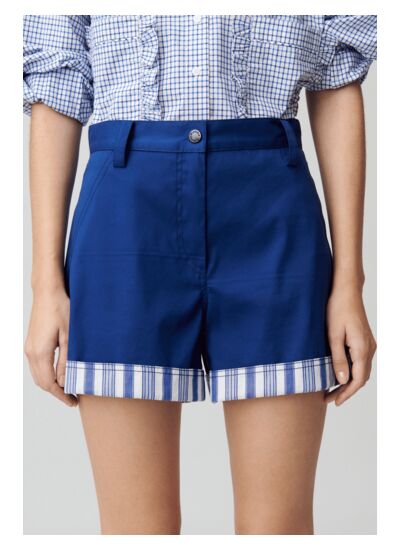 Short court à surpiqûres ton sur ton avec ourlets à rayures