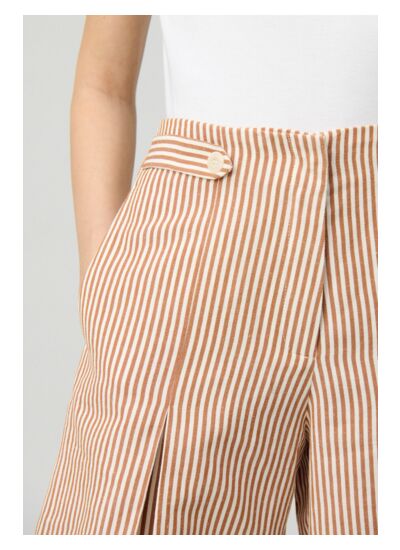 Avec quelles pièces associer ce short rayé pour un look réussi ? Il se marie idéalement avec un t-shirt uni ou une blouse légère. Pour un style estival, ajoutez des sandales ou des baskets blanches, et un sac minimaliste.