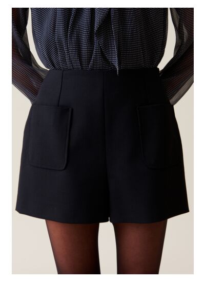 Short taille haute à coupe droite avec poches plaquées surpiquées