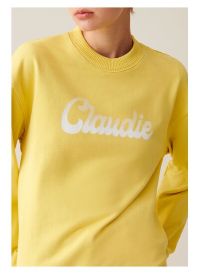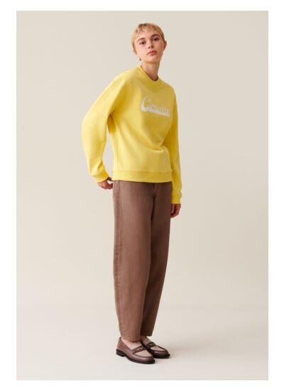Sweatshirt jaune ample en maille chiné à col rond et manches longues avec patchs contrastants CLAUDIE