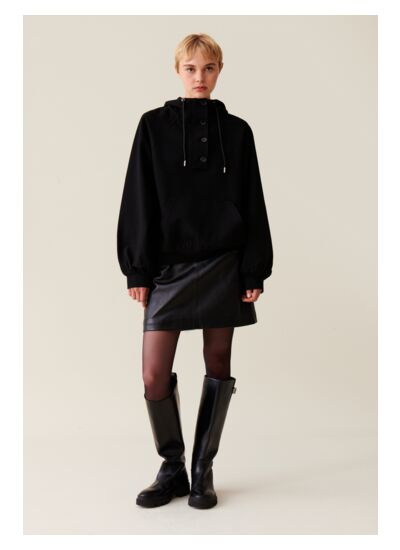 Ce modèle est-il adapté aux saisons fraîches ? Oui, ce sweatshirt à capuche Claudie Pierlot est parfait pour les mi-saisons et les journées fraîches grâce à sa matière chaude et sa coupe enveloppante qui protège efficacement du vent.