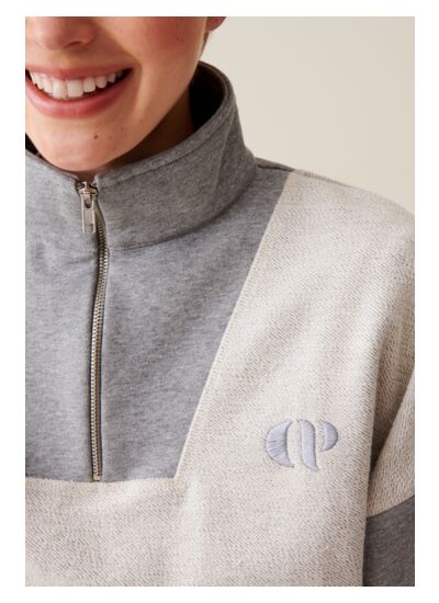 Sweatshirt en coton à col montant avec zip métallisé et finition contrastée