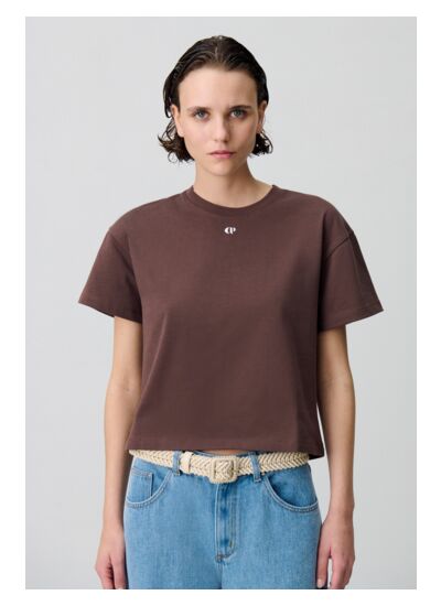 Tee-shirt en coton à col rond et coupe large avec broderie CP sous le col