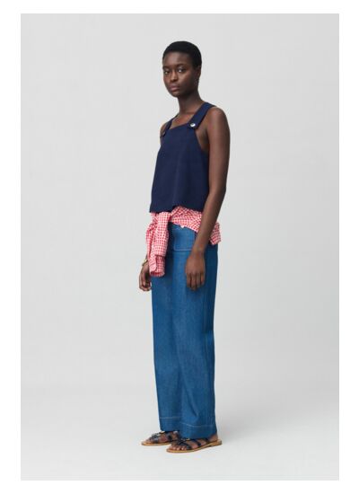De quel tissu est composé ce top col carré ? La composition exacte n’est pas précisée, mais Claudie Pierlot privilégie des matières de qualité, confortables et durables, adaptées à un usage quotidien.
