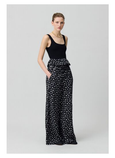 - Empiècement volanté au bas du top à motif floral