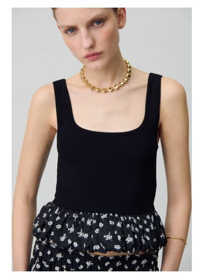 Top bi-matières avec bretelles esprit débardeur et col dégagé