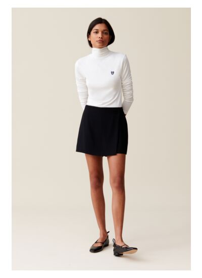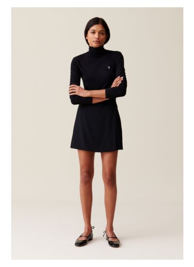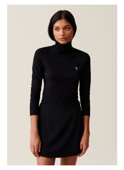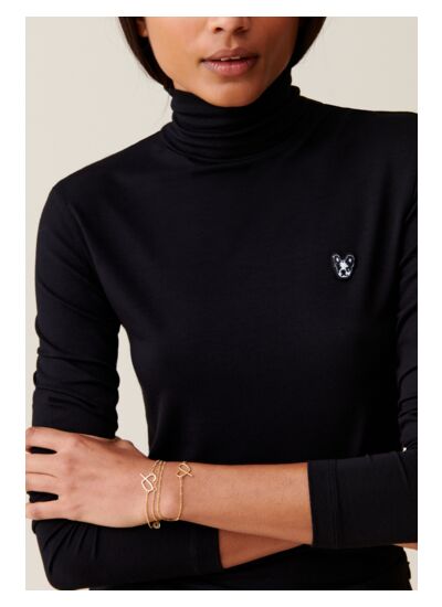 Top noir à manches longues avec col cheminée et patch chien Toto au niveau de la poitrine