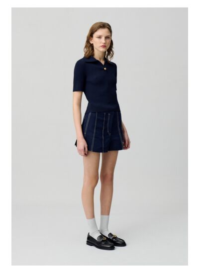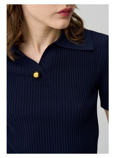 Top en maille à manches courtes avec col polo et détail bijou doré