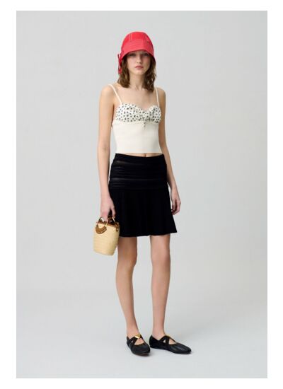 Top court bi matière avec fines bretelles et empiècement floral