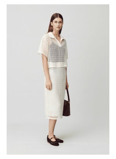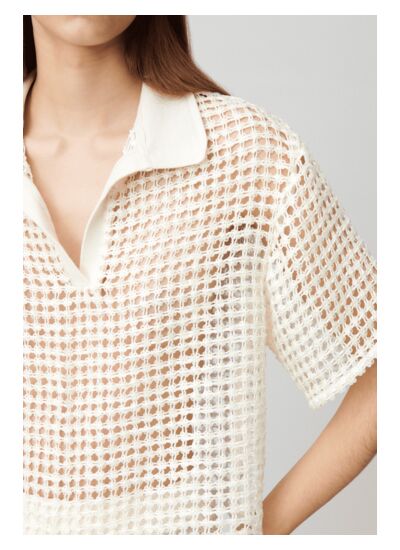 Ce top manches courtes en crochet est-il adapté aux saisons chaudes ? Oui, sa matière légère et ajourée assure une excellente respirabilité, idéale pour les températures estivales tout en apportant une touche élégante à votre tenue. Comment entretenir ce top Claudie Pierlot ? Il est recommandé de le laver à la main ou en cycle délicat à basse température pour préserver la finesse du crochet et éviter tout rétrécissement ou déformation. Quelle coupe offre ce top manches courtes ? Sa coupe ajustée met en valeur la silhouette sans être contraignante, offrant un équilibre parfait entre confort et style sophistiqué. Ce top s’accorde-t-il facilement avec d’autres pièces ? Absolument, il se marie aussi bien avec un jean pour un look casual chic qu’avec une jupe ou un pantalon tailleur pour une allure plus habillée. Ce modèle est-il fidèle à la taille habituelle Claudie Pierlot ? Oui, il correspond aux standards de la marque, il est conseillé de prendre votre taille habituelle pour un ajustement optimal.