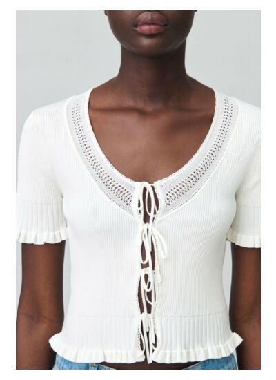 Quelle coupe et style propose ce cardigan ? Le design met en avant un jeu de nœuds subtils qui apporte une touche féminine et élégante. Sa coupe ajustée souligne la silhouette tout en restant confortable, parfait pour un look casual chic ou habillé.