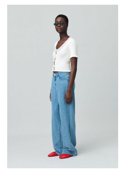 Ce cardigan convient-il à tous les types de morphologie ? Sa maille fine et sa coupe ajustée s’adaptent à la plupart des silhouettes, mettant en valeur la taille sans ajouter de volume. Les détails nœuds apportent un point d’intérêt qui attire le regard sans alourdir la silhouette.