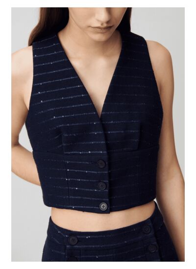 Quelle taille choisir pour ce top veston ? Claudie Pierlot taille généralement juste, il est conseillé de prendre votre taille habituelle pour un ajustement parfait, ni trop serré ni trop ample.