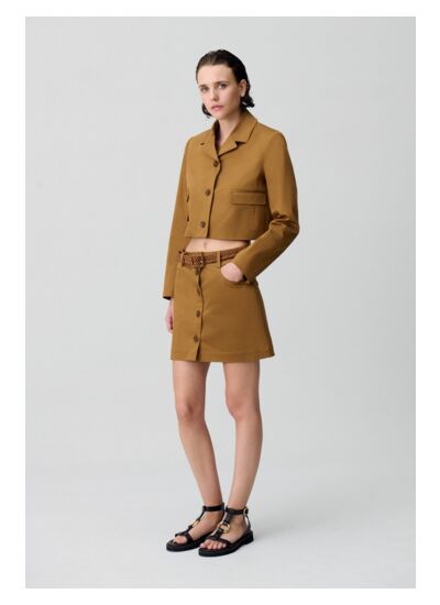 Veste courte à manches longues avec petit col tailleur et boutons devant