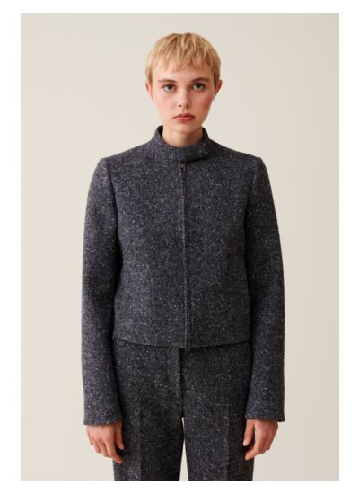 Petite veste en laine grise avec fermeture par zip métal à double curseur