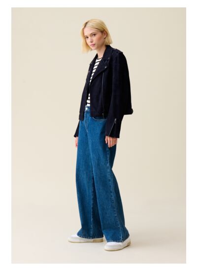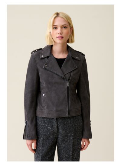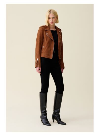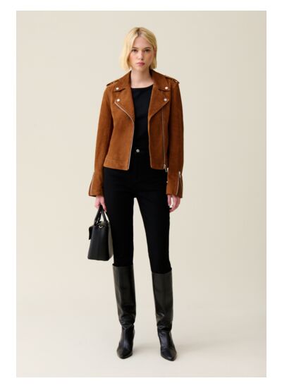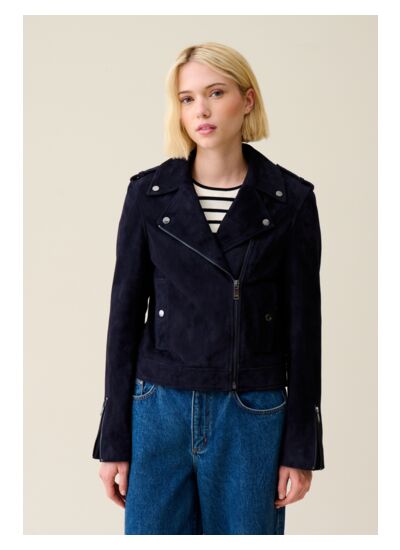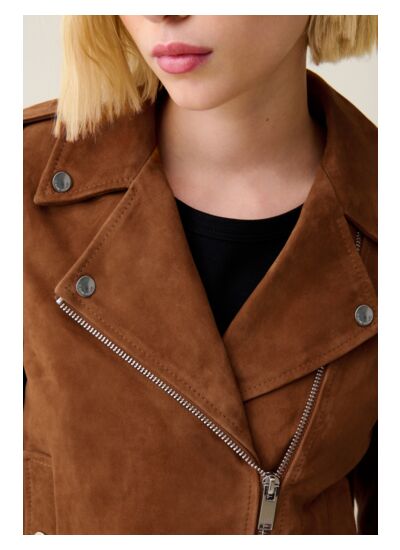 Veste perfecto en cuir suède avec col perfecto à pointes pressionnées