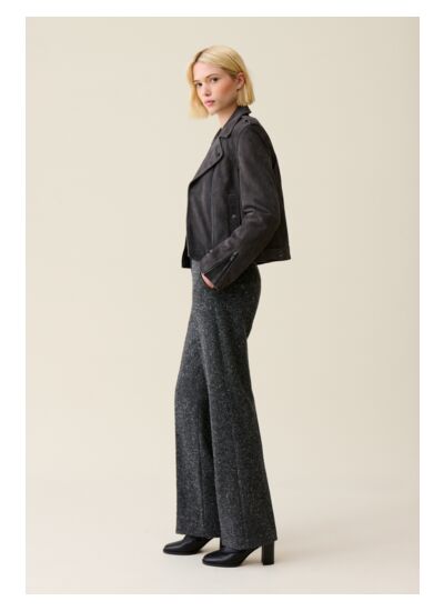 Quelle matière compose ce blouson Claudie Pierlot ? Ce perfecto est confectionné en cuir suède, offrant une texture douce et un aspect mat élégant, idéal pour un look sophistiqué et moderne.
