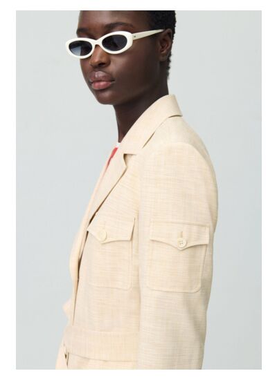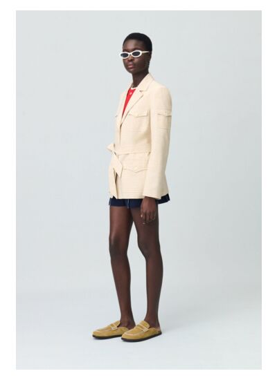 Quelles sont les caractéristiques principales de la veste saharienne Claudie Pierlot ? Cette veste se distingue par sa coupe saharienne classique, sa ceinture intégrée qui affine la silhouette, et des finitions soignées typiques de la marque Claudie Pierlot. Elle allie élégance et fonctionnalité pour un style intemporel.