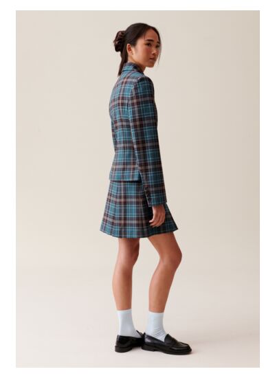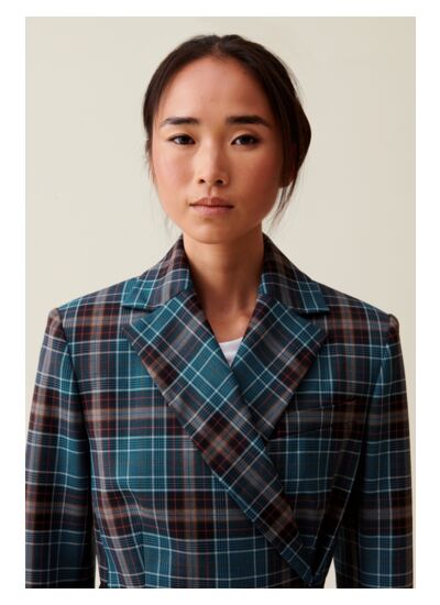 Veste de tailleur carreaux avec col tailleur et fermeture croisée à boutonner sur le côté